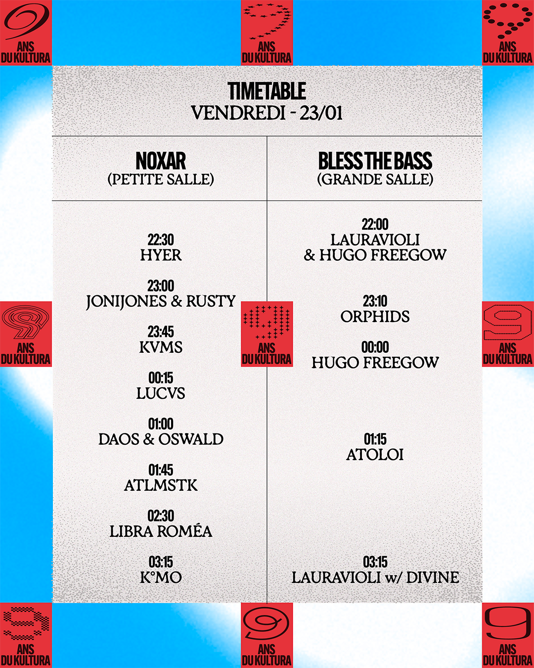 Pour marquer cette édition des 9 ans, l’identité visuelle a été conçue autour de ce chiffre, servant de fil conducteur au concept.