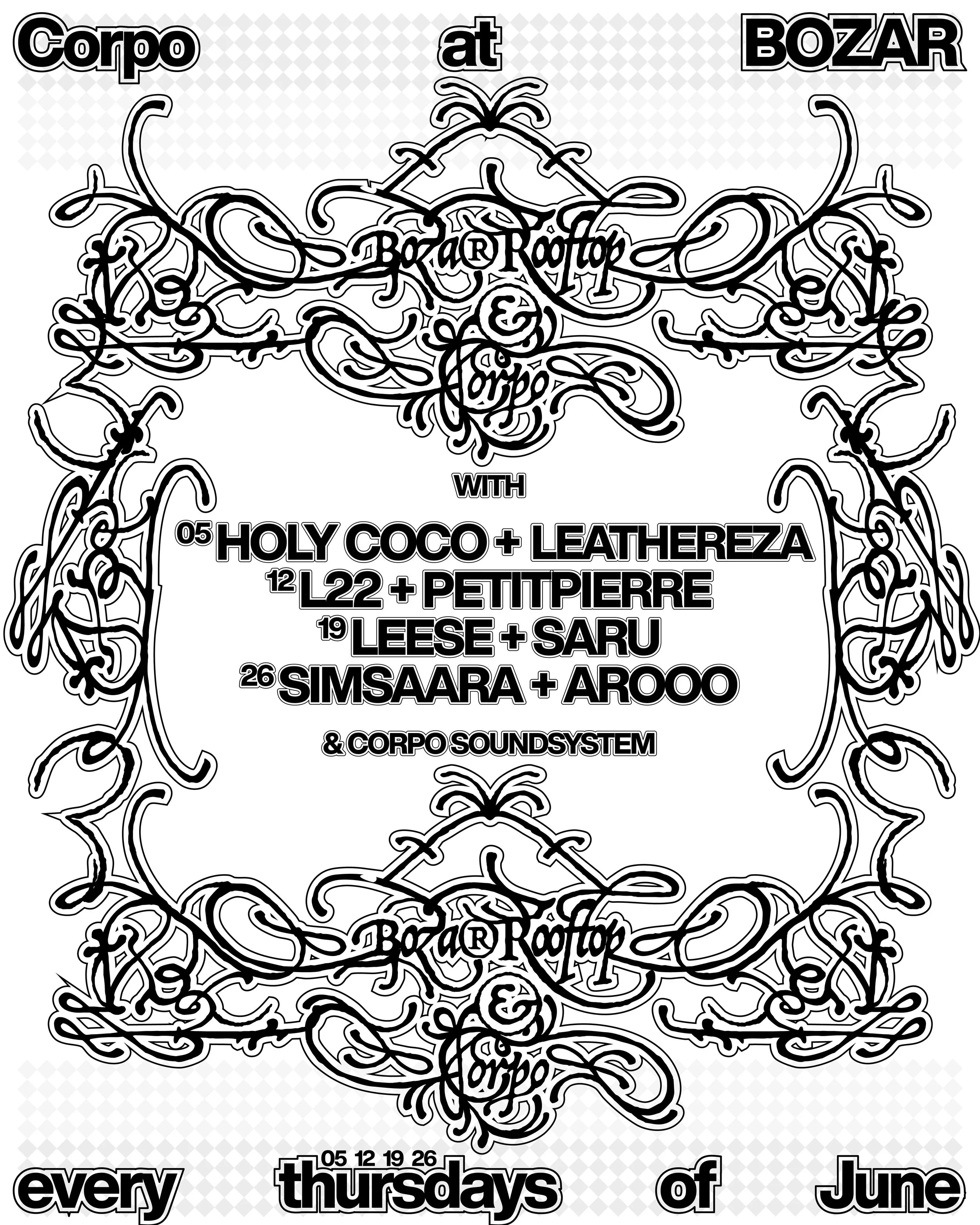 “Corpo est une organisation multidisciplinaire. Notre but est la recherche de singularité en milieu nocturne. Nous appliquons les codes d'un capitalisme poétique et d'un corporatisme humaniste.