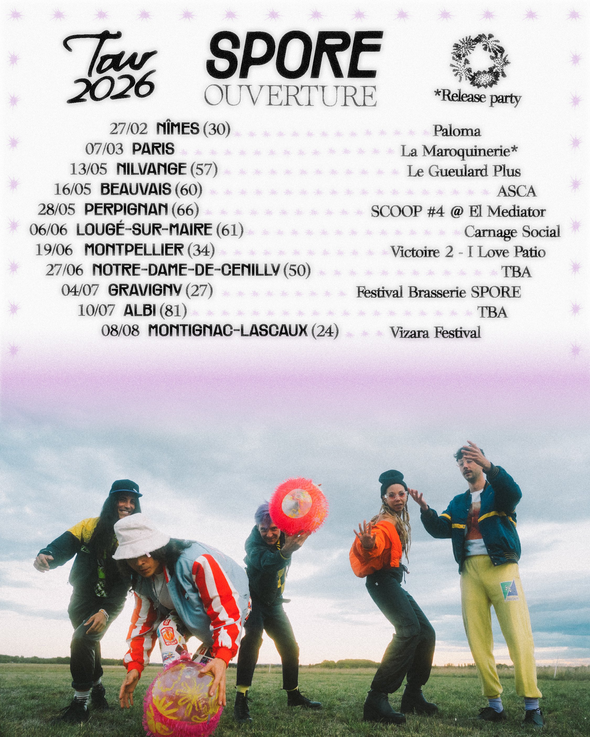 SPORE est un groupe Alternative Pop avec Louise & Tristan de CEYLON, Matteo & Léo de Princesse Näpalm et Aurélien aka Ponce.